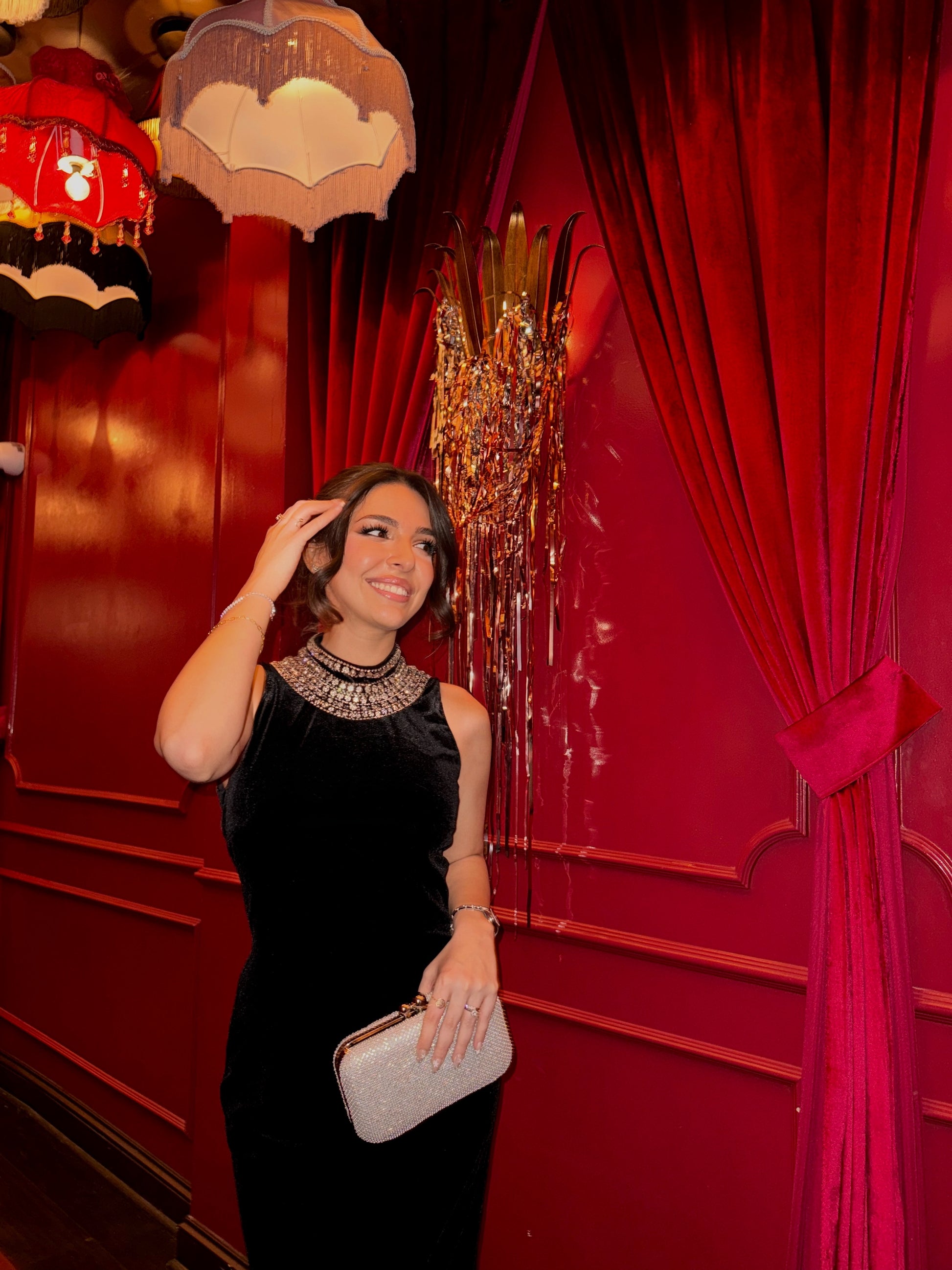 Elevate your evening allure with the ChicTwirl Rhinestone Velvet Gown. This ankle-length masterpiece combines luxurious velvet with exquisite rhinestone beading, creating a show-stopping look. The halter neckline, backless design, and slimming silhouette exude elegance and confidence. Perfect for upscale events, this dress features slight stretch for a comfortable fit and a discreet zipper closure for seamless sophistication. Available in sizes S, M, and L, tailored to highlight your natural curves.